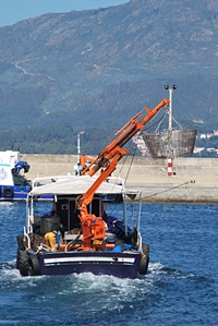 Desde as oito da mañá hai actividade no porto do Cabo da Cruz. Os barcos descargan desde as dez até as doce do mediodía aproximadamente. Homes, pero tamén mulleres, baixan dos barcos unha vez que os gruístas do porto descargan os sacos de mexilóns para directamente cargalos en palés, embalalos con film trasparente para que non se desfagan os vultos e vaian rapidamente para os camións frigoríficos que os leven a depurar.